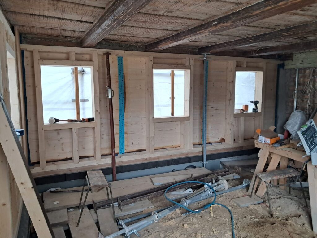 - Ergänzung der umliegenden, statisch tragenden Wand in Holzrahmenbauweise